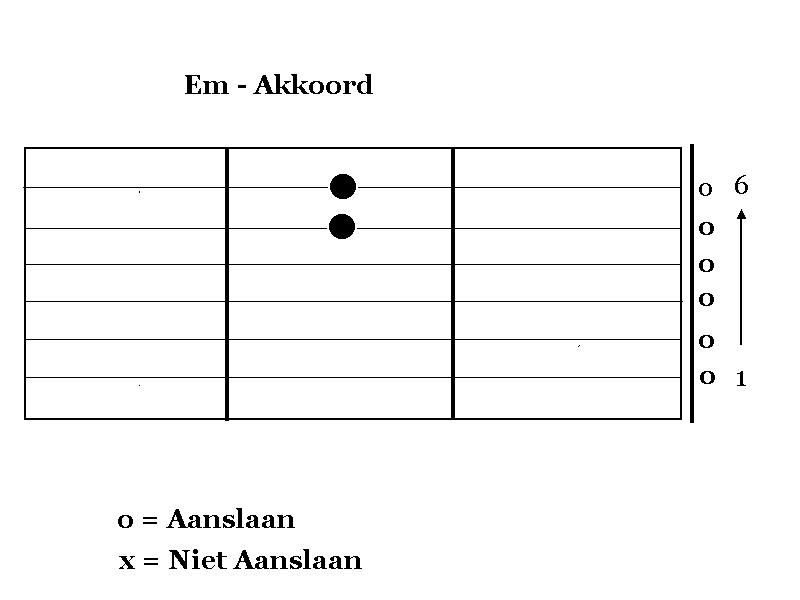 - Snaar 6 (E) tussen 4de en 5de fret, toonhoogte snaar 5